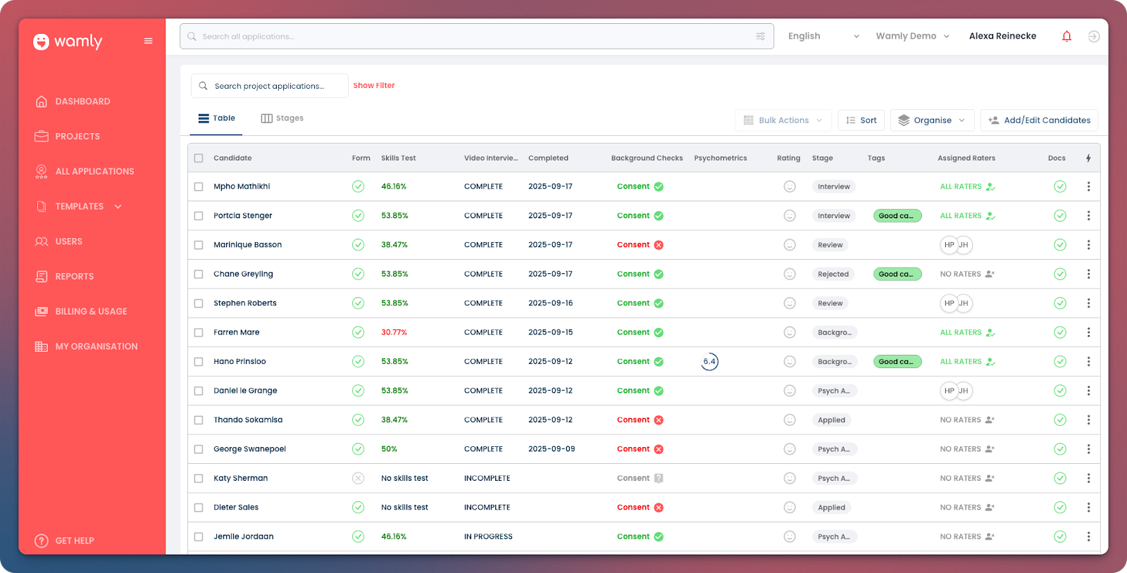 The Background Checks column provides you with at-a-glance information, empowering you to manage any required actions efficiently. Options here include: