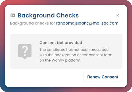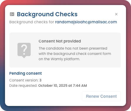 Initiating the consent request is a seamless process. By clicking the 'Renew Consent' button, the system automatically dispatches a secure email to the candidate. This email contains a unique link for them to review and submit their updated consent. Upon submission, the candidate's status is automatically refreshed in your dashboard, ensuring administrators have an accurate, at-a-glance overview of all consent statuses in real-time.