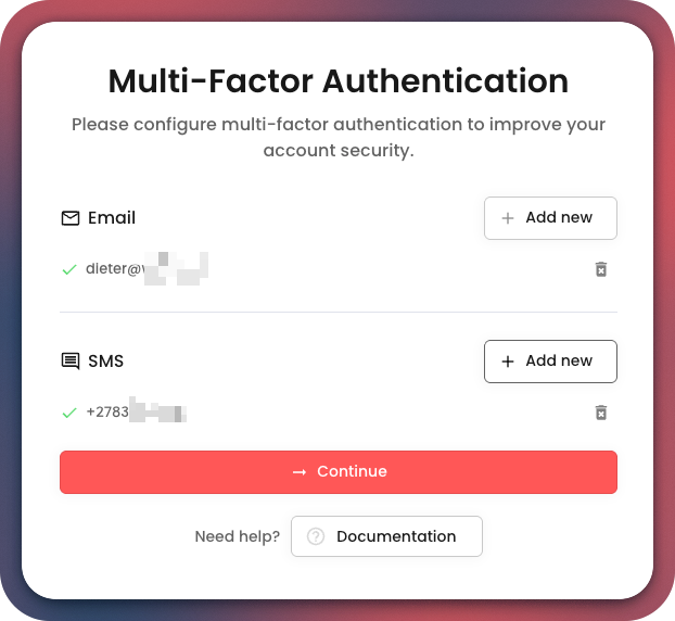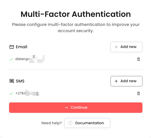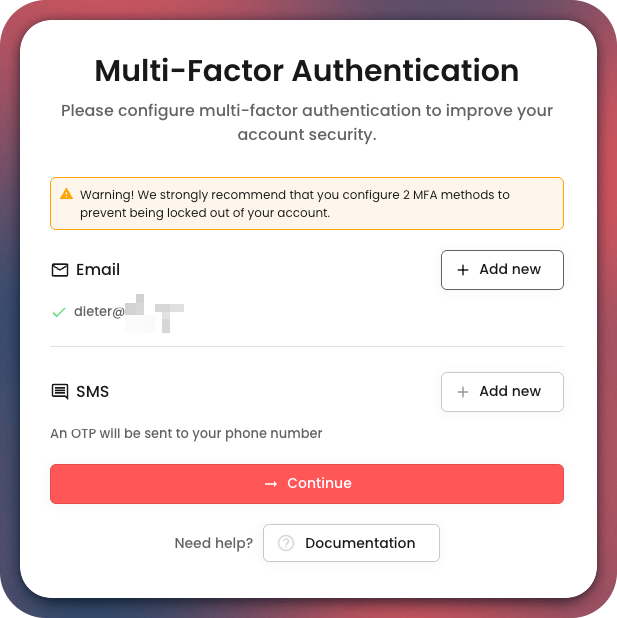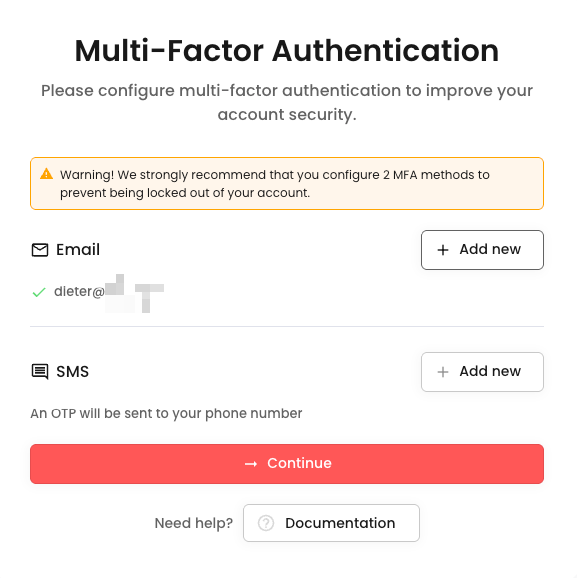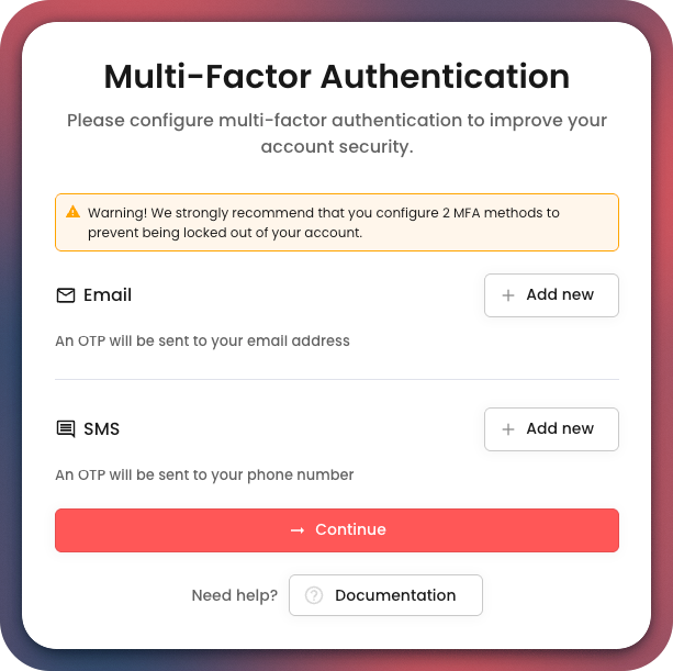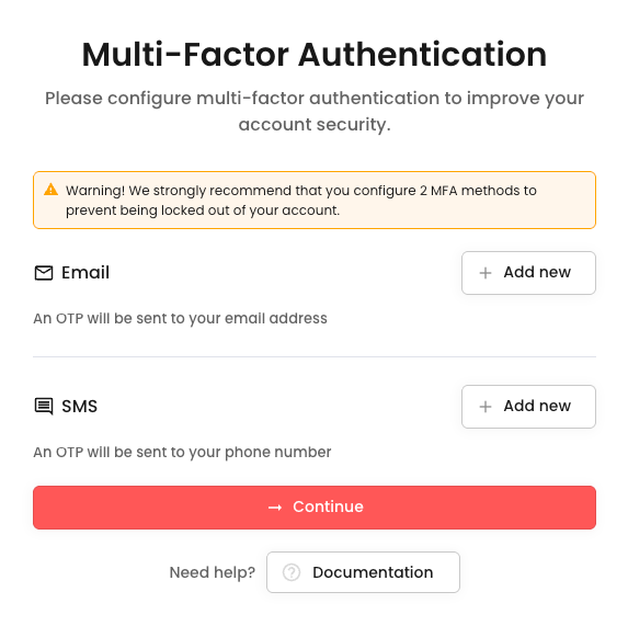 We strongly recommend that you configure at least 2 MFA methods to prevent you from being locked out of your account if you lose one of your MFA methods.