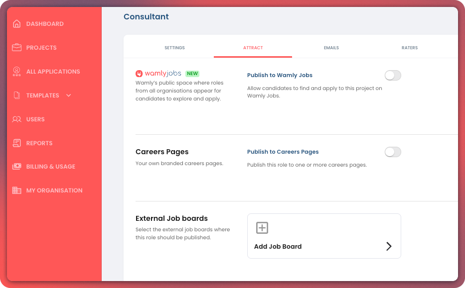 - Manage all your active listings from our new, centralized Attract Tab within your project setup. This hub allows you to oversee Wamly Jobs, Adzuna, and future integrations in one place.