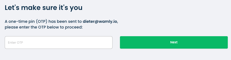 You will be required to enter the OTP code received in step 3 and click "Next".