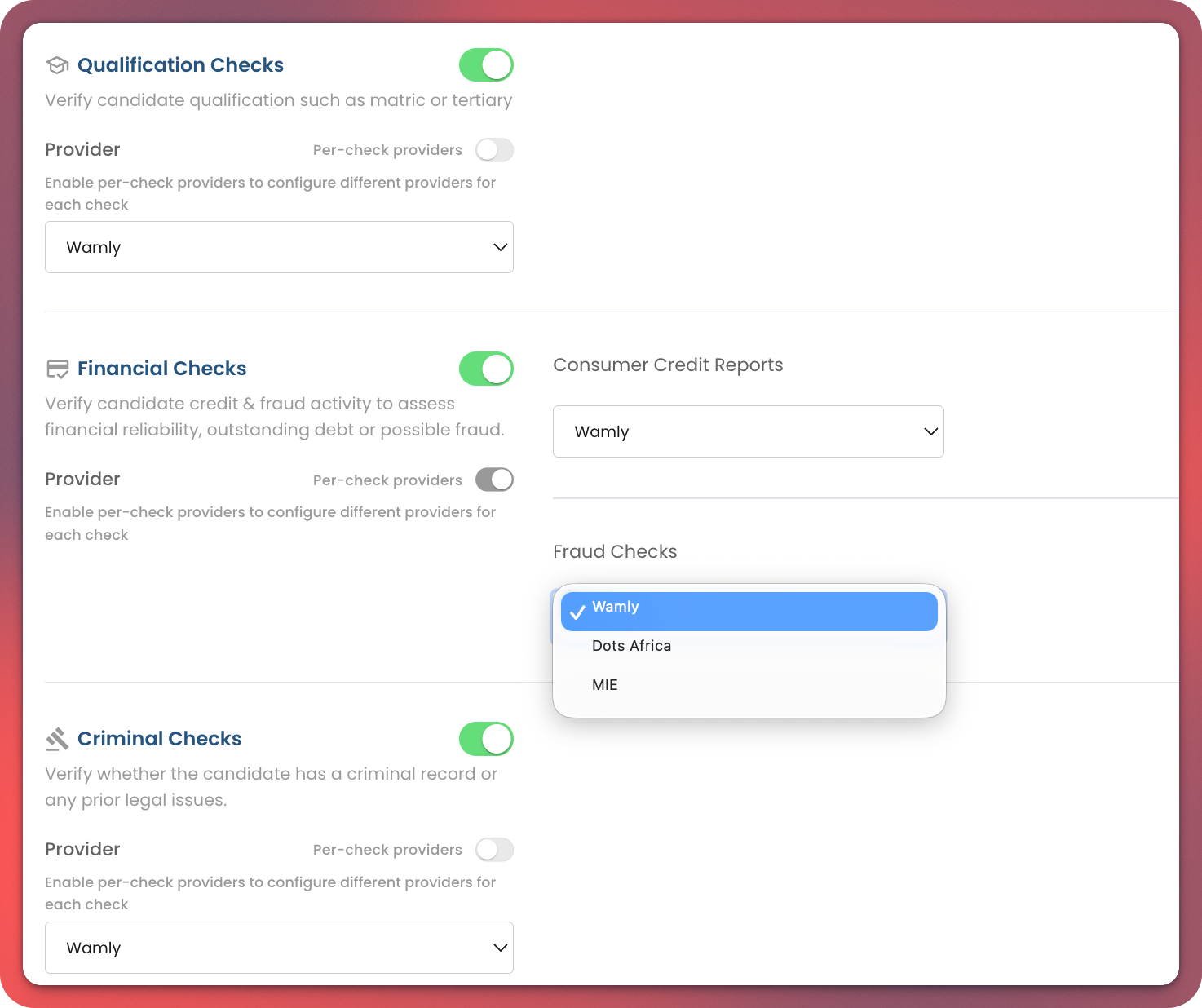 We are excited to announce that Wamly has expanded its background screening suite to include Fraud Checks. System Managers can activate this feature by navigating to: